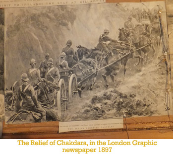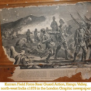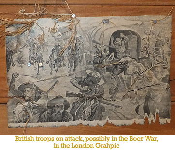 Back at the main house Sam Zeno had one final surprise. On the walls of an upstairs bedroom under the tattered scrim was a virtual scrapbook of old pictures glued onto the sarking, and judging by the dates on the clippings they were almost certainly pasted there in the early days of the house’s occupation. The room was small, perhaps the bedroom of young Hugh, Michael and Edythe’s only son. The pictures were pages torn from English publications, many from the London newspaper the “Graphic”. They vividly capture the spirit of the 1890s, and it is tempting to think that this is where Hubert John Burke learned what it meant to fight for the British empire. When the call to arms came in 1914 he stepped up. Whether he was inspired by thoughts of glorious victory or afraid of battle, or both, we shall never know, but there were valiant models to follow.