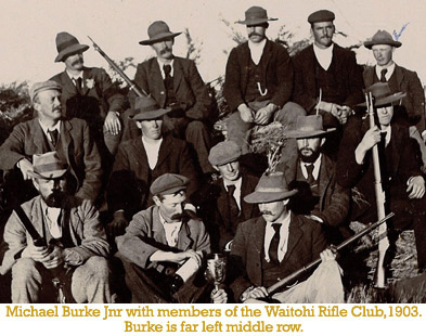 Unlike his father Burke bedded more into his local community, being a member of the Waipara Roads Board, the Hurunui Rabbit Board, the Canterbury Yeomanry Cavalry, and the Waitohi Gorge Rifle Club.